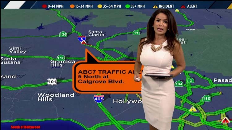 Alysha was born 1972 in Los Angeles. Beside being a traffic reporter, Alysha appeared in a minor role on Agents of S.H.I.E.L.D. And no surprise there – she actually played there a reporter. Her full bust made many of her fans wonder whether Del Valle has breast implants or not. Her full cleavage is all natural. No plastic surgery there. Althoug she sometimes wears a dress with push up effect that makes her bust look even bigger than usual.